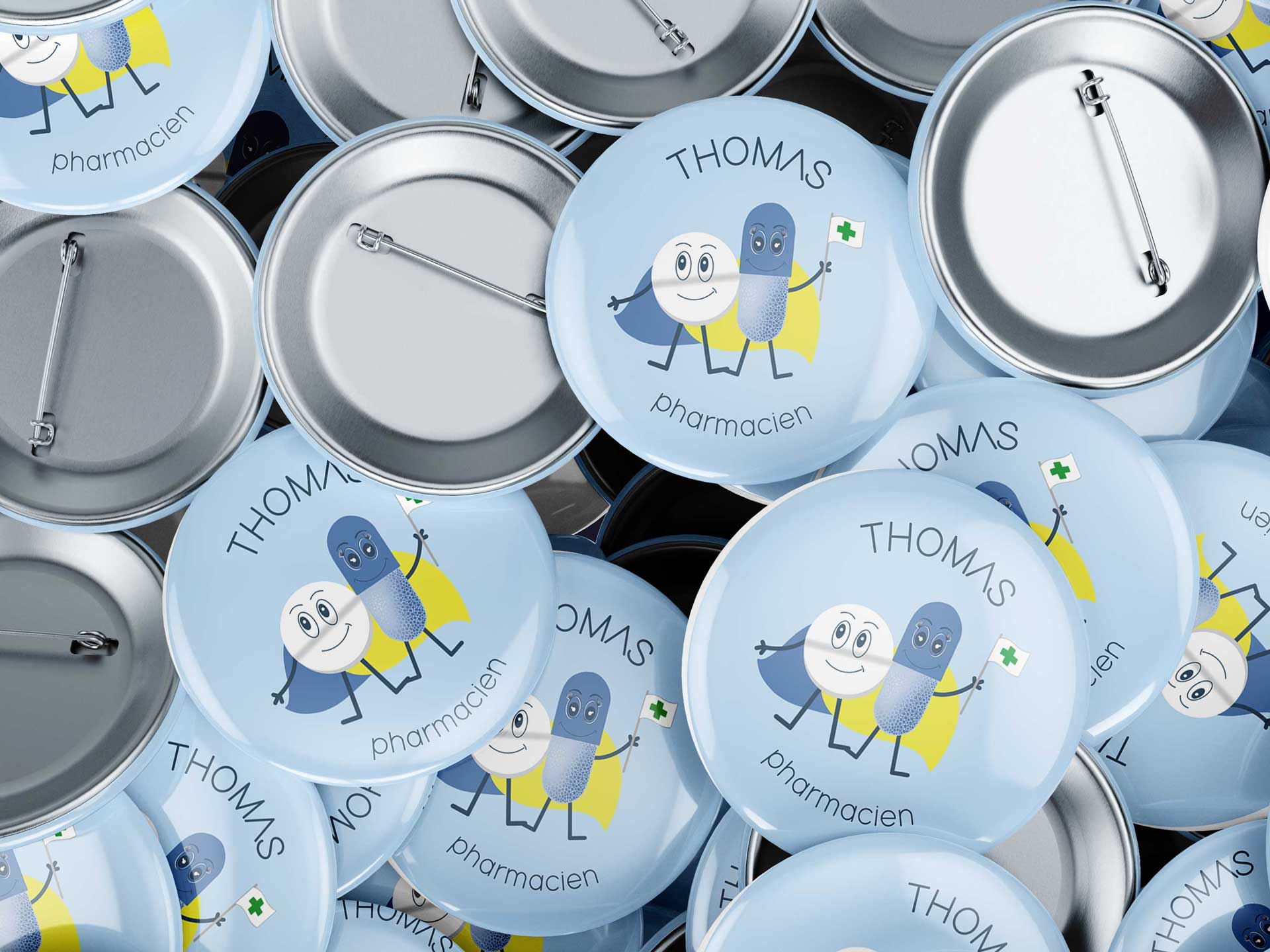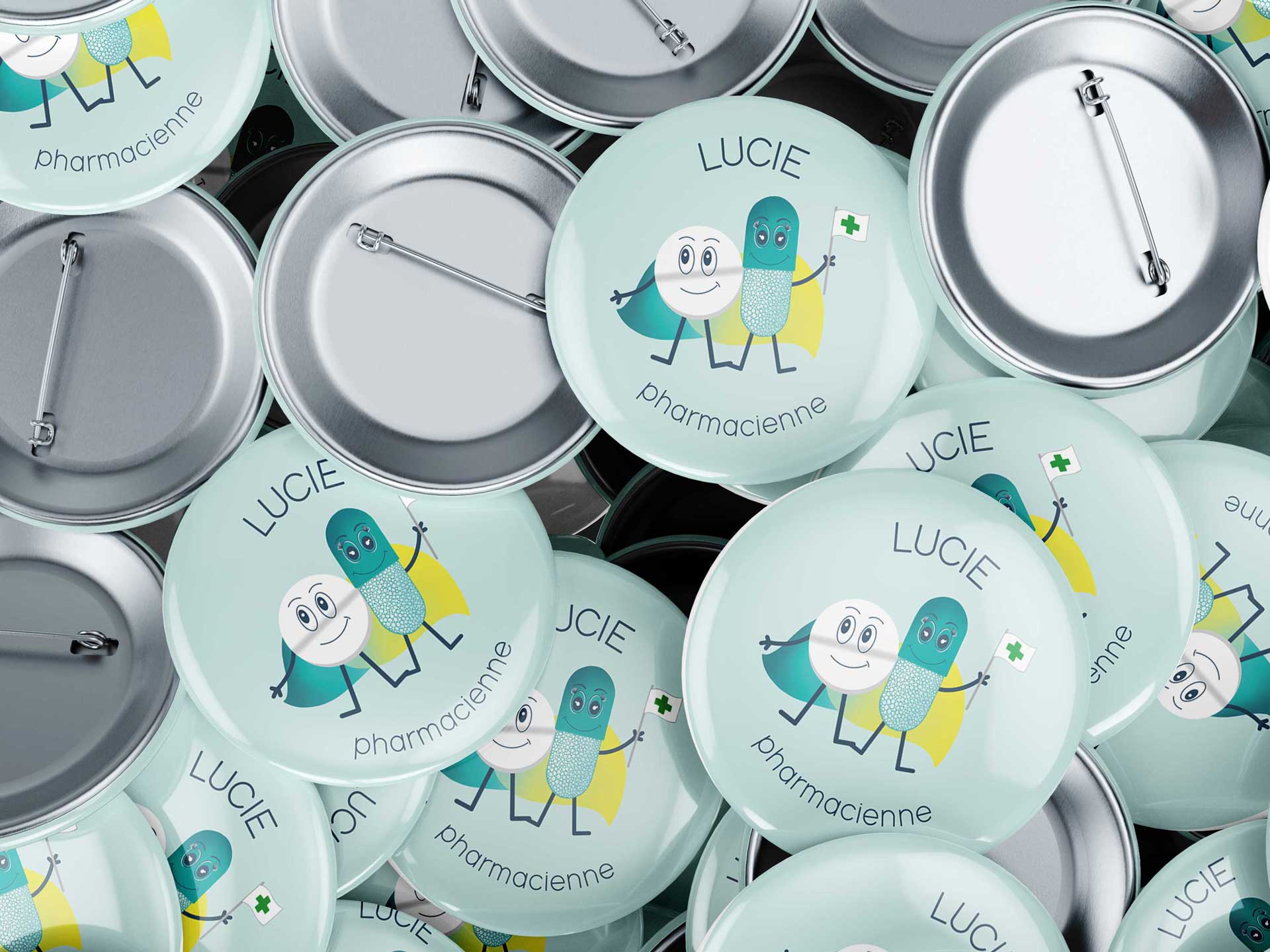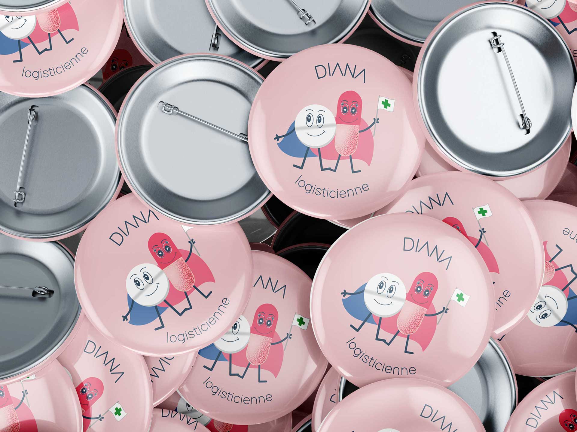 Voici un nouveau projet qui m’a permis d’allier mes activités de pharmacienne et d’illustratrice ! Avec les membres de la direction de la Pharmacie des HUG, nous avons imaginé un projet qui permettrait que chaque membre de la pharmacie puisse être reconnaissable au milieu de toutes les autre personnes en blouse blanche au sein de l’hôpital.