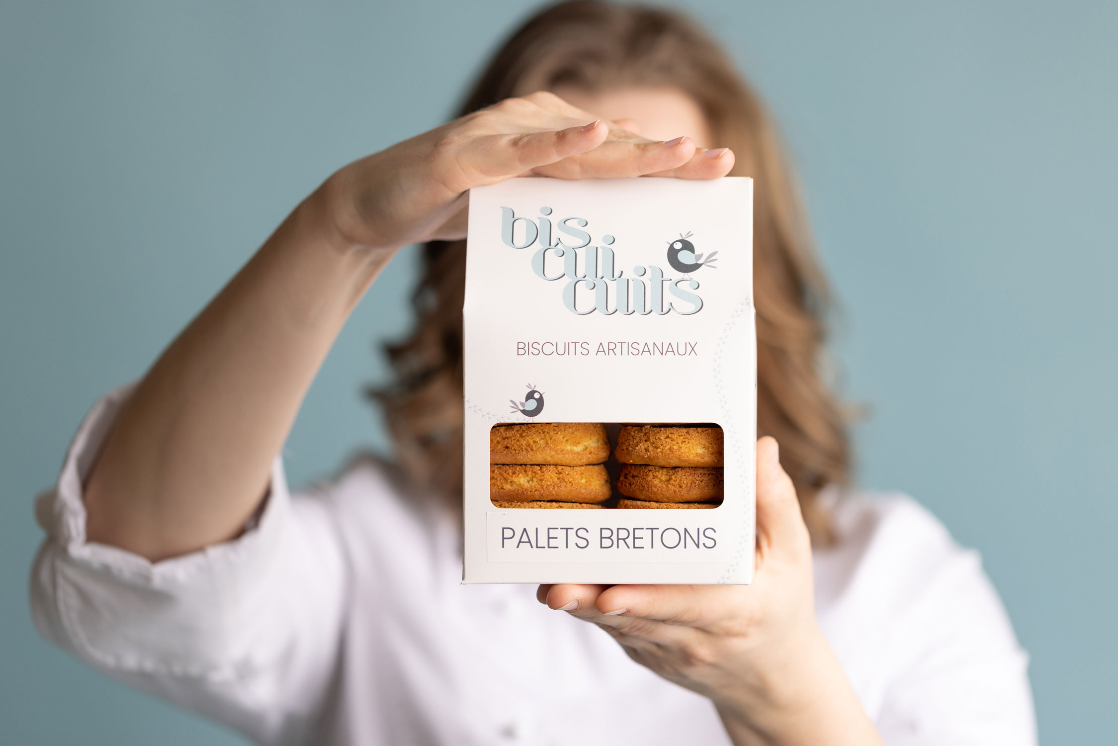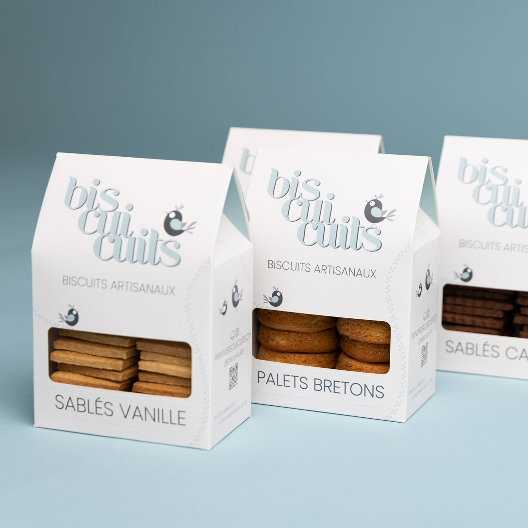 Elle m’explique que bis…cuit cela signifie « cuit deux fois », qu’à l’époque on cuisait la pâte deux fois pour mieux la conserver et que son amie Mélissa a suggéré Biscuicuits comme nom pour sa marque !