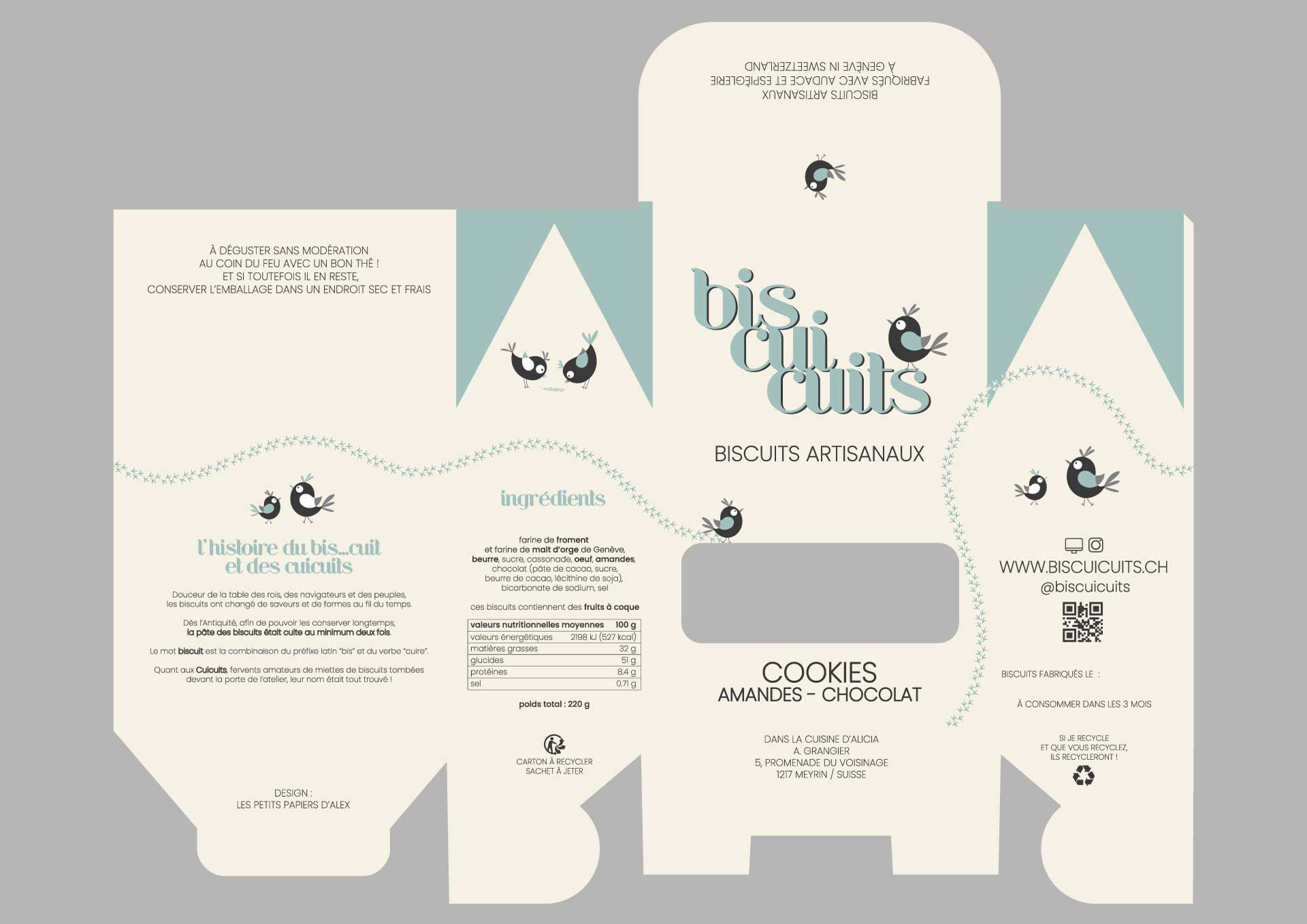 J’avais besoin de créer une identité visuelle pour mon nouveau projet Biscuicuits et c’est parce que j’aime l’univers d’Alexandra que je me suis adressée à elle.